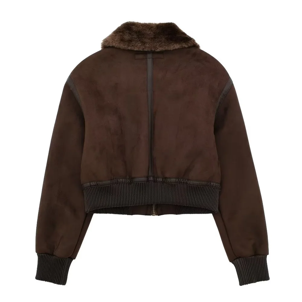 UNIZERA2023 Autumn and Winter New Women’s Casual Standing Neck Contrast Strap Decoration Loose Double sided Jacket Coat