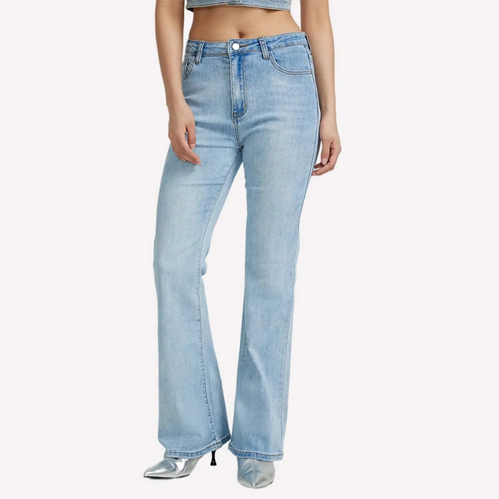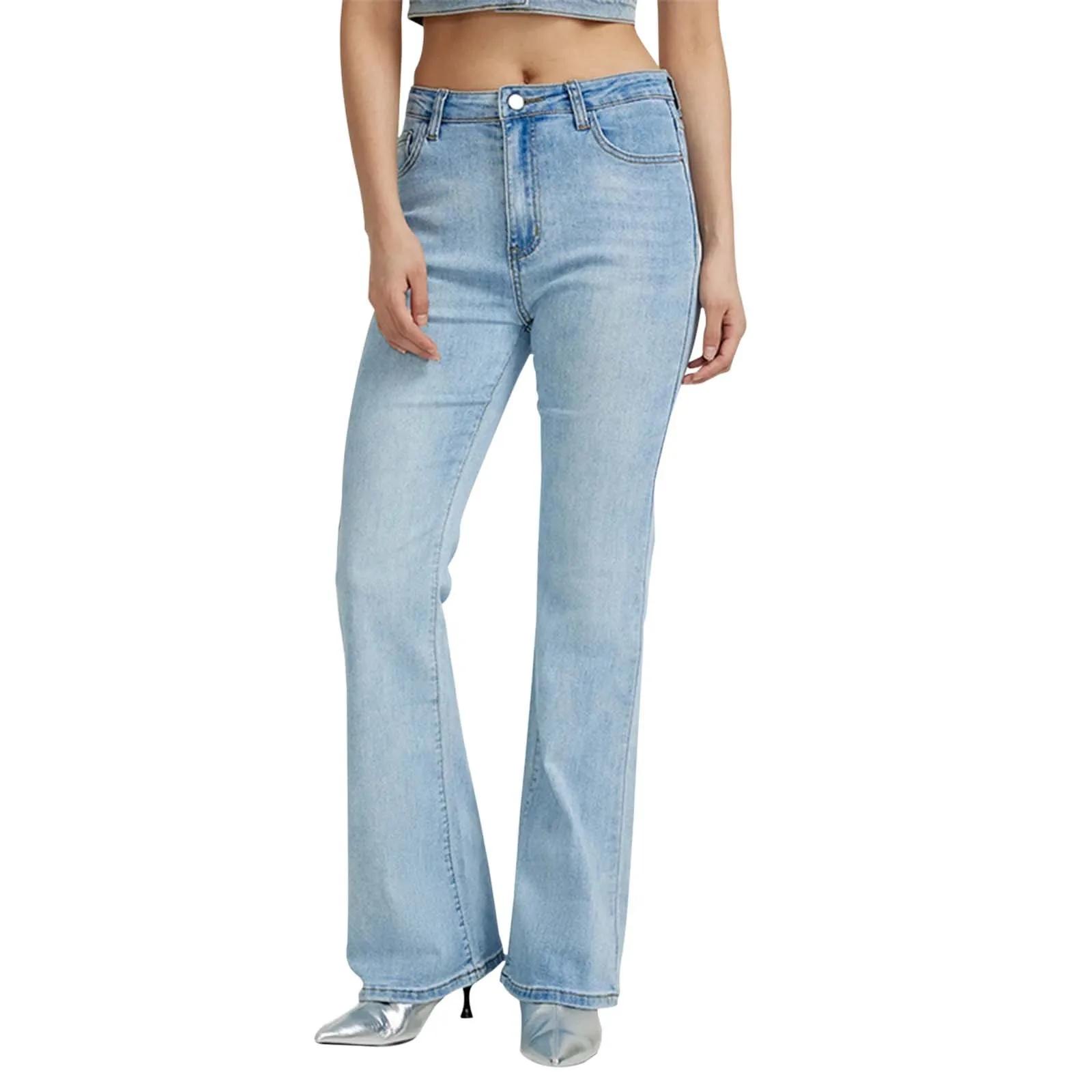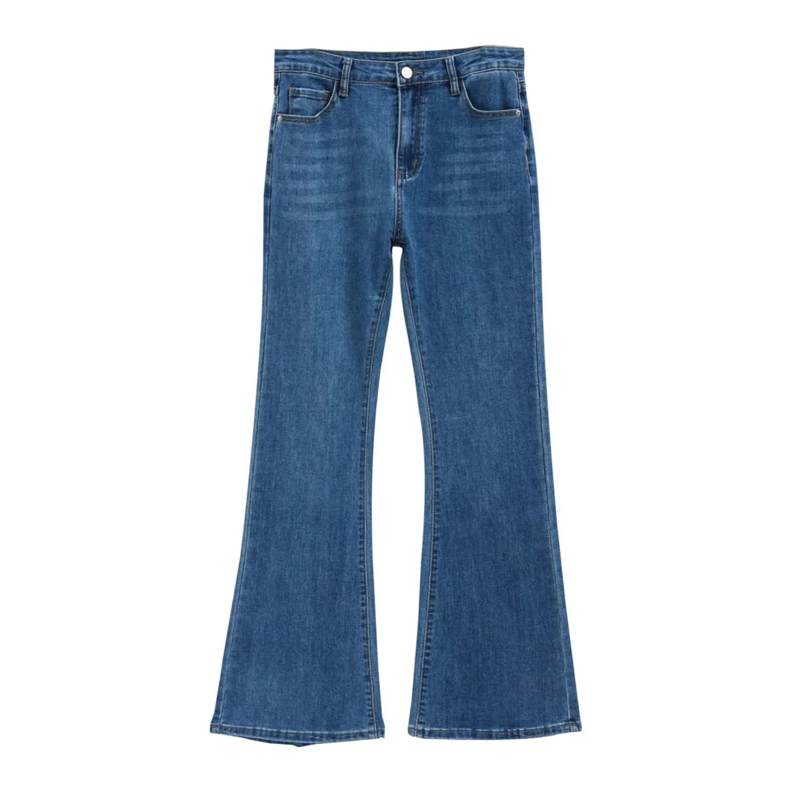 New Women’s Wide Leg Stretch Flare Mid Rise Jeans Trousers